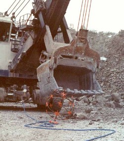 Mine Cable Services manufactures the Satellite, which together with the Torpedo strain relief permits a shovel to pick up its own tail cable without other assistance and without damage to the tail cable itself.  This eliminates waiting for extra personnel to assist with a mining shovel tail cable during a simple shovel move at the work place.
